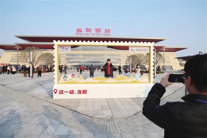 图为搭客在当阳西站打卡。 当阳市文旅局 供图
