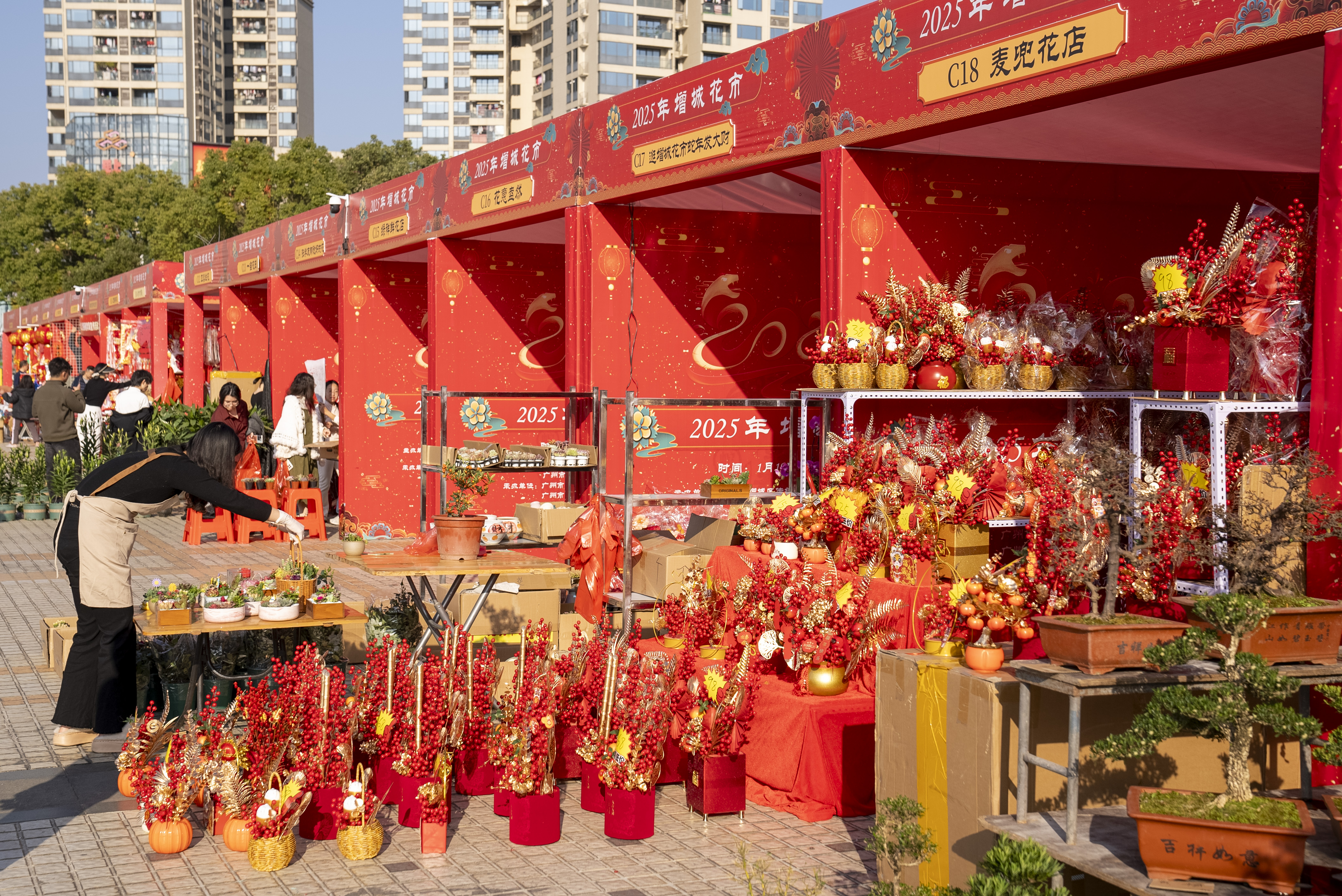 广州增城城服公司总司理彭建铭向记者暗示,增城的花市是广州11区中最早通达、握续时刻最长的,逐日9:00至22:00买卖。除鲜花、春联、年货、好意思食、盆桔等档口外,还树立茶艺、汉服、文创、志愿者、特质文化展示等特质摊位和公益摊位共268个。