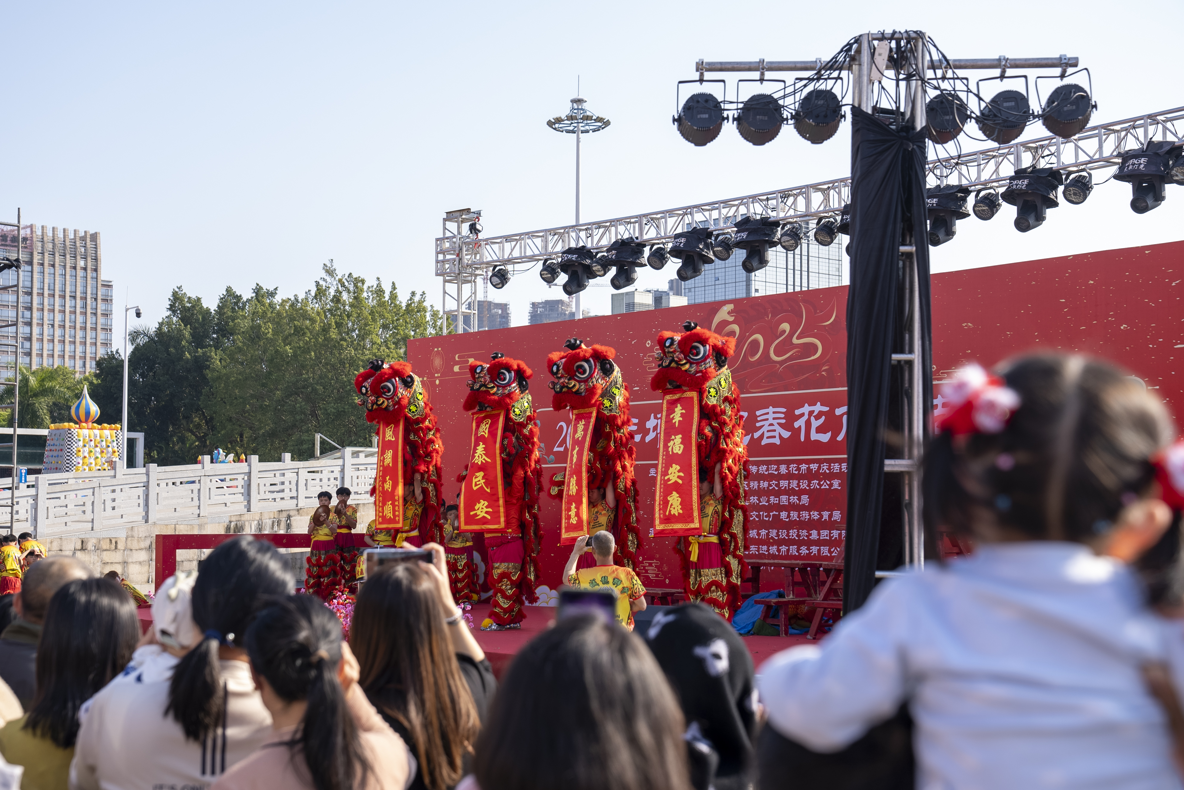 广州增城迎春花市上的醒狮饰演。