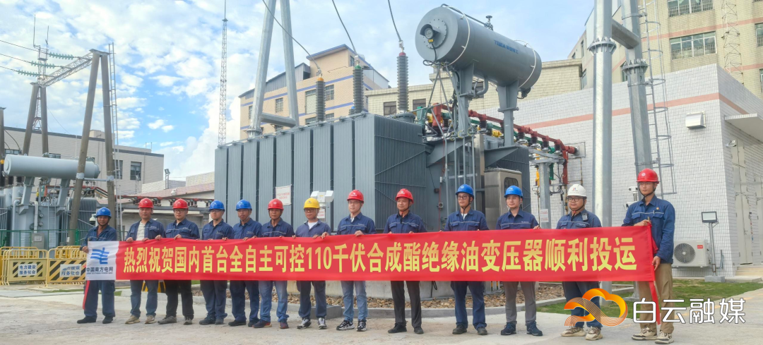国内首台自主可控110千伏合成酯绝缘油变压器在白云区东谈主和镇胜利投运。