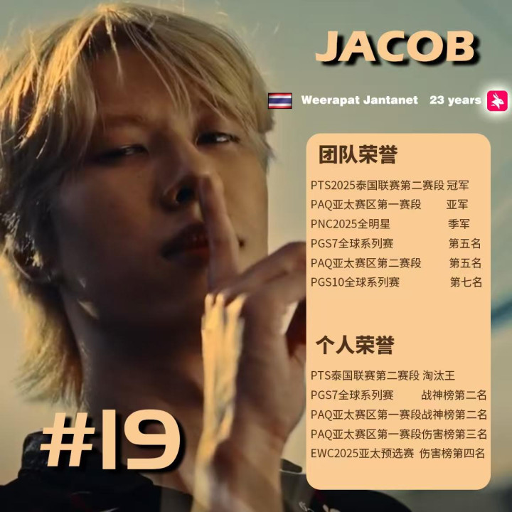 凭借着在本年的一些紧迫赛事中的出色阐扬,东谈主称“泰国TheShy”的Jacob足以入选2025年度TOP20