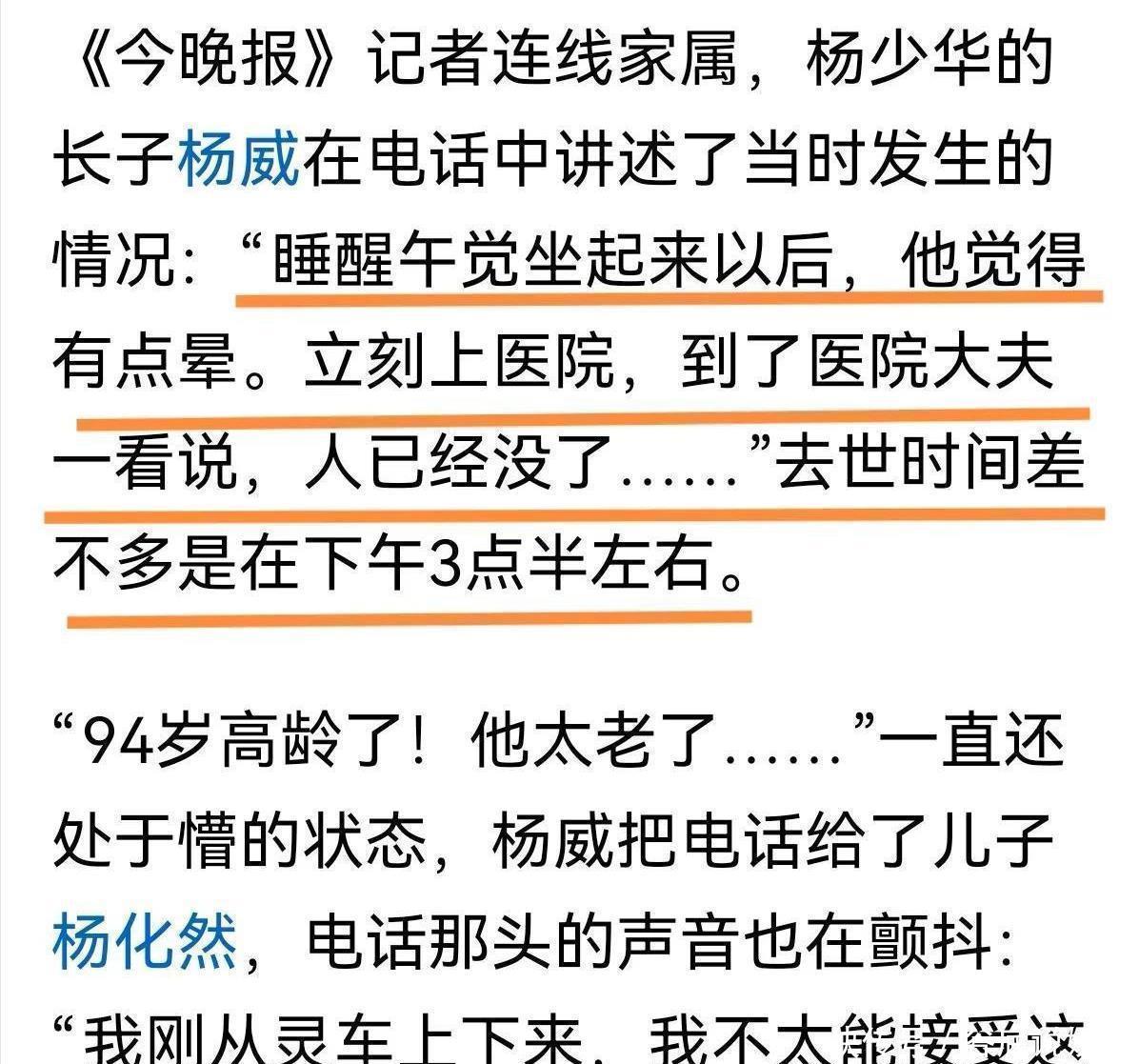 关联词大女儿杨威表示,老爷子并不是在午睡时坦然离世的,而是醒来背面晕悲凉,被送到病院后就没再追思。