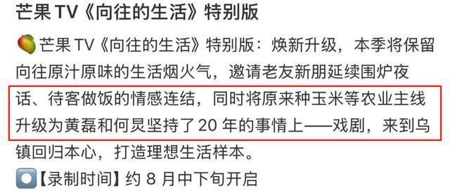 近期综艺不少,《心动的信号》、《我家那妮儿》、《中餐厅》以及《穷苦荒芜》等老牌综艺扎堆上线,《姐姐方丈》、《地球超簇新》等全新综艺动须相应,就连才刚刚传出录制音讯的《相逢爱东说念主》和《向往的生涯》也依然先一步登上热搜激发网友利弊参议,综艺火爆流程了然于目。 《向往的生涯》行为国民慢综艺,此前热播了7年,每年都是收视、话题度以及招商三手合手,俨然是芒果台的镇台之宝。但令不少东说念主感到不测的是,在播到第7季时,何炅和黄磊两位方丈东说念主在首期节目就公布了“停办《向往》”的音讯。