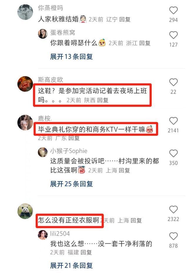 更有网友机敏地指出:"这么去毕业典礼会让东谈主误以为是技师在开会。"其实意在言外一经特别明显了,无非是认为家长挑选出来的衣服,大要弥漫漂亮细密,但却莫得家长应有的多礼把稳。
