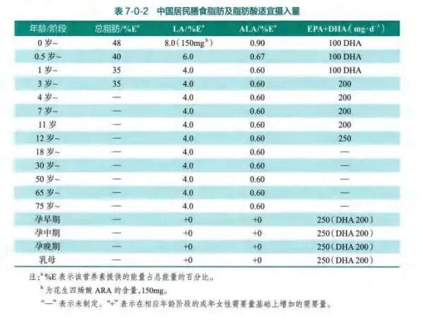 我国最新版《中国住户膳食养分素参考摄入量》(DRIs)合计,孕期每天DHA+EPA的恰当摄入量为250mg,其中DHA至少200mg;而对于不同庚岁阶段孩子来说,每天的DHA恰当摄入量是100-250毫克。