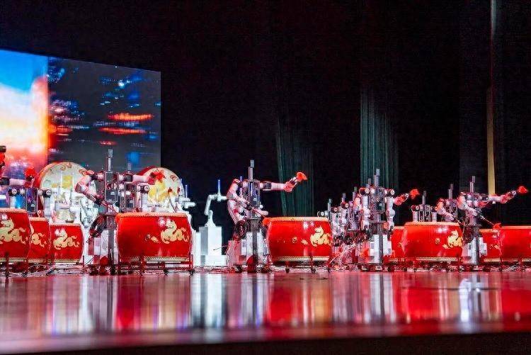 紧随后来的开场节目《万马奔腾》更添硬核气场。20条机械臂与26组双臂机器东说念主都挥饱读槌,高涨饱读声敲出奋进节奏。“节目融入了民族特质唢呐,中国饱读的音色中,更揉进山东原土的黄河号子。”邹鲁礼乐团团长张凯裸露,最终孩子们唱响的儿歌,以直率视角勾画对改日的憧憬,让科技饰演多了份东说念主文温度。