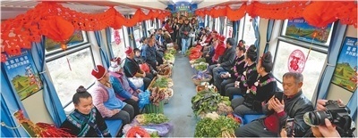 成昆铁路5634次慢火车上,四川大凉山的乡亲们带着家禽去赶场。 孟 宽摄
