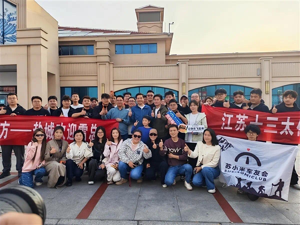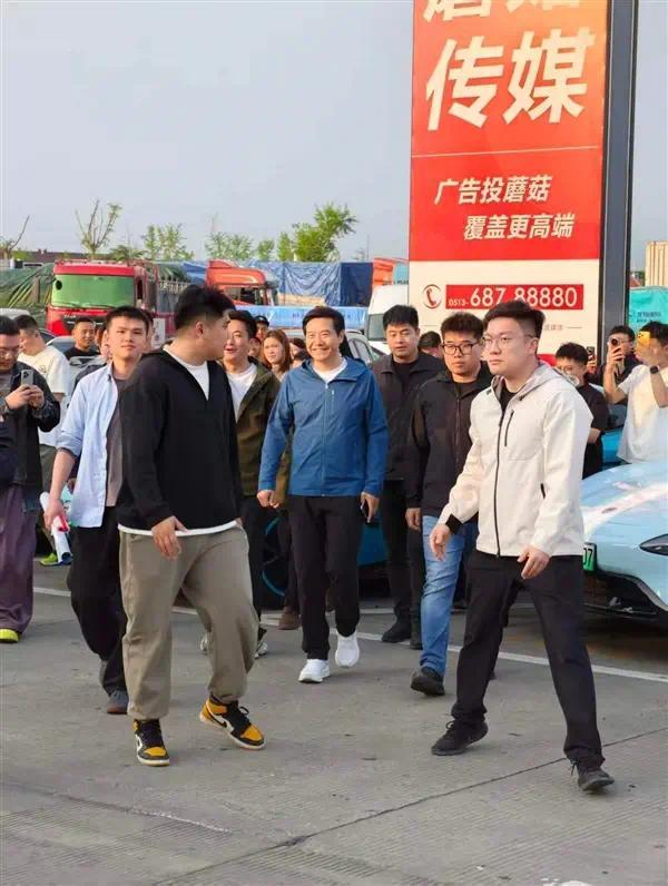 车外连接的东说念主群,并非网传的维权者,而是从全江苏各地赶来的米粉和车友。他们大多是在直播间得知雷军会在此劳动区休整后,相互见知着赶过来的。
