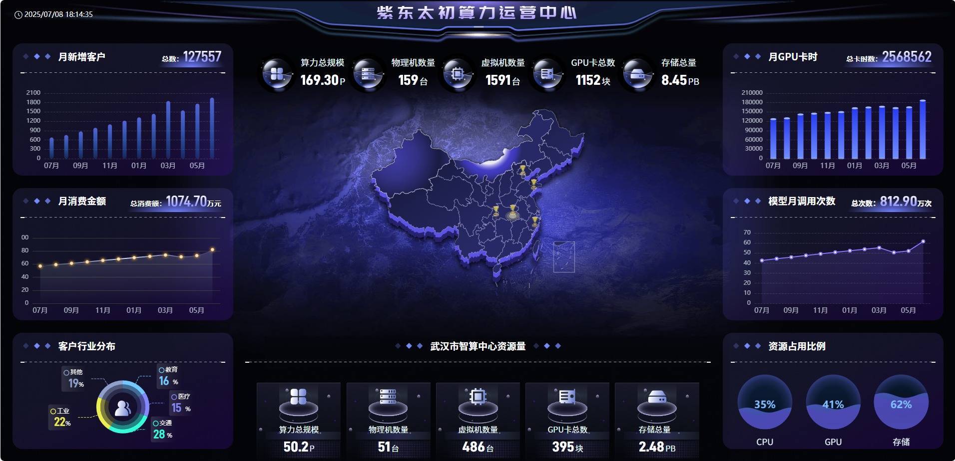 在武汉东谈主工智能推敲院展厅,“紫东元始云”平台的及时数据面板上,超百个愚弄场景的动态数据不休刷新。这个国内首个全栈国产化万卡智算云,正让AI 技艺加快渗入到产业肌理。
